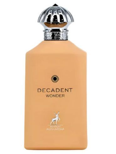 Indulge in Maison Alhambra Decadent Wonder, a unisex symphony of juicy blackcurrant and peach blooming into lush jasmine, creamy vanilla, and molten caramel. Warm sandalwood, amber, and soft musk weave a rich, enveloping trail that lingers luxuriously, evoking cozy autumn evenings and intimate romantic encounters.