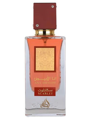 Indulge in Lattafa Abiyedh Scarlet, a seductive women's Eau de Parfum. Juicy raspberry and exotic saffron ignite the senses in the top, unfolding into a lush heart of rose and jasmine laced with subtle spices. Warm ambergris, sensual musk, and creamy sandalwood base lingers with sophisticated allure, perfect for romantic evenings and special occasions.